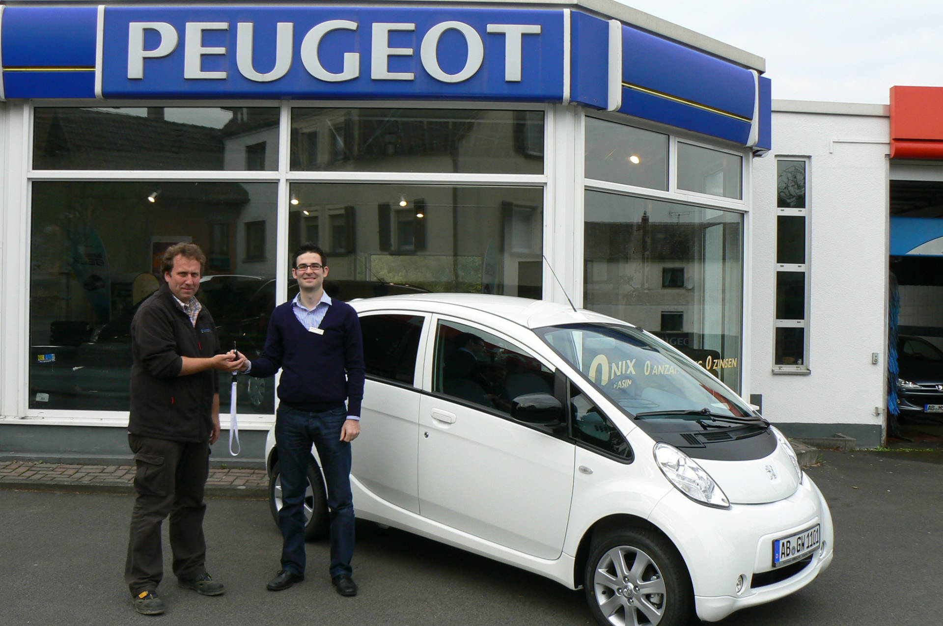 Auslieferung unseres 1. verkauften Elektroautos, der Peugeot Ion, an die Gemeindewerke Kahl im Oktober 2011.